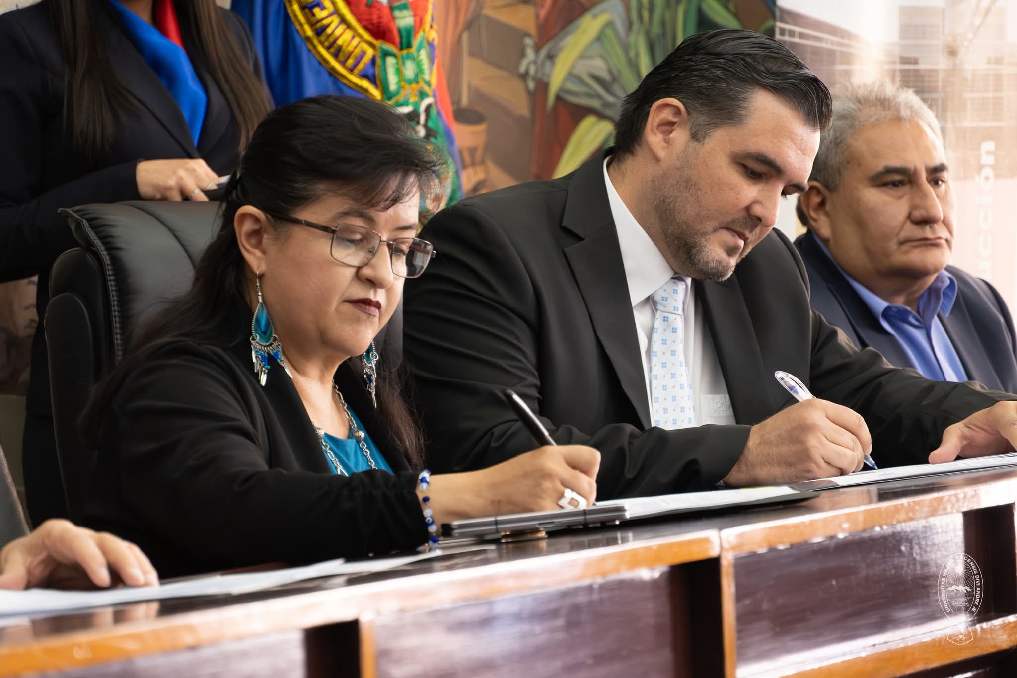 📑 La Universidad Mayor de San Andrés (UMSA) aportará su conocimiento científico a proyectos de inversión pública impulsados por el Estado. Para ello, la Rectora María Eugenia García Moreno, Ph.D., y el director de la Unidad de Proyectos Especiales (UPRE), Enrique Fernando Bruno Camacho, firmaron dos importantes convenios de cooperación interinstitucional.